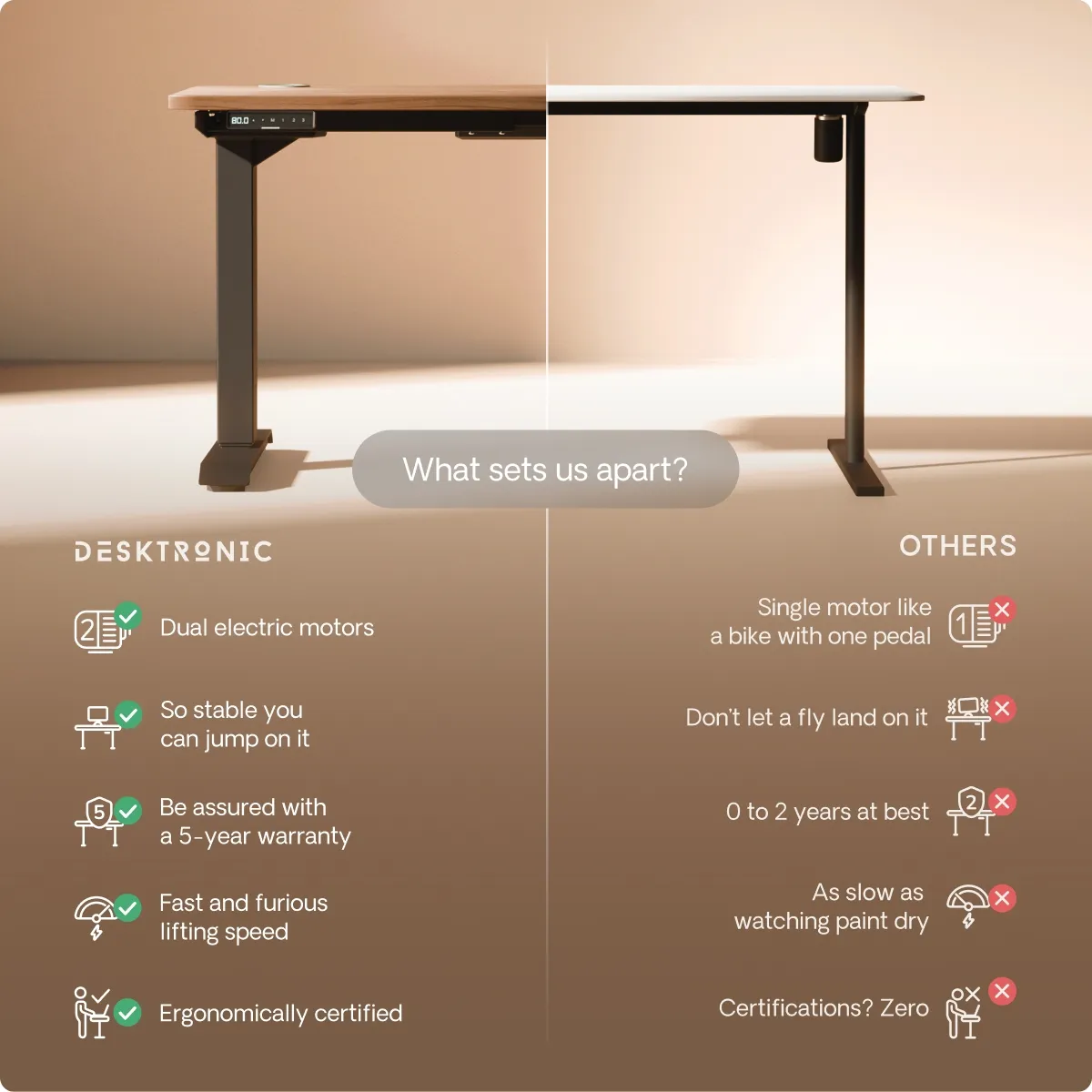 Equipped with a high-speed dual motor system and impressive 50mm/s speed, HomePro ensures smooth transitions to your preferred height without any delays.