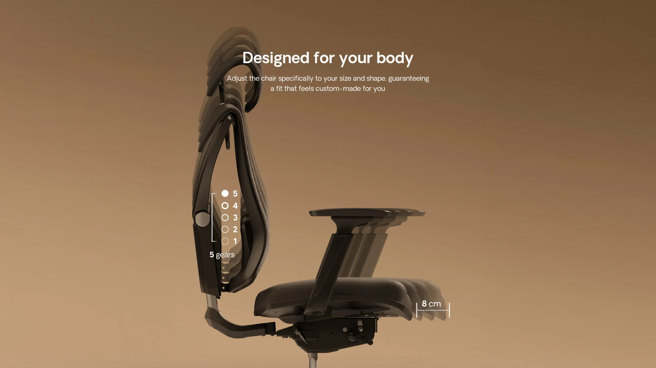 Adjust the seat height, depth, and backrest height precisely for a personalised fit that feels custom made for you.